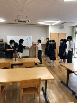 1学期の終業式もランチルームから各クラスの深沢チャンネルに配信されました。校長先生、生徒代表、生活指導主任の話を生徒たちは教室で姿勢を正し聞いていました。