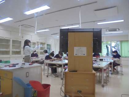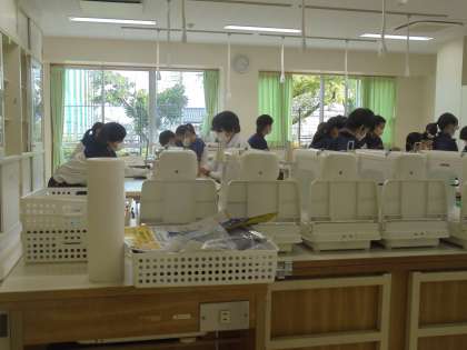 被服室は、比較的狭い教室です。しかし、分散登校なので、今日はゆったり作業ができているようです。