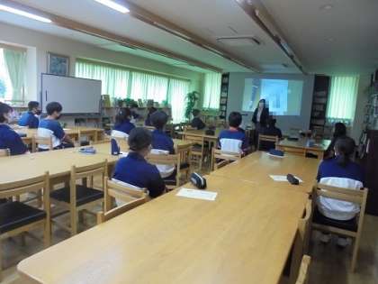 7日と8日は、1学年生徒の東京都学力調査を実施する予定でしたが延期となってしまったので、急遽1年生全員を対象に読み聞かせの授業を行いました。「おとなになれなかった弟へ」という作品は、国語の教科書に掲載されている作品ということで、今回取り上げました。