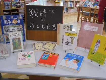 図書室には、戦時下の子どもたちというコーナーが設置されています。毎年、8月になると、司書さんが関連の書籍を集めてくれているので、是非みてください。