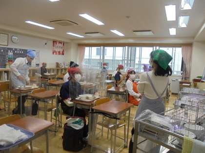 さて、残り少なくなった分散登校での給食時間は、半分の人数で授業や給食を頂いています。写真は、3年1組の給食前の様子です。突然のお願いにもかかわらず、毎日忘れることなく全員がエプロンと三角巾を着用し、もちろんマスク着用で給食の準備を行っています。