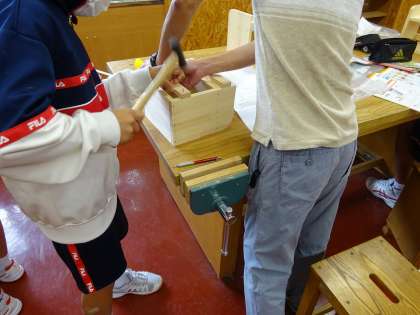 1年生技術の授業では、スマホ収納付きCDラックの製作を行っていました。それぞれの進度に合わせて作業を進めており、組み立てややすりがけなどを丁寧に行っていました。中には完成し、2作品目に取り組んでいる生徒もいました。授業の最後には全員で掃除をし、作業で出た木くずなどを丁寧に集めている姿が印象的でした。木工室には大型の集塵機があり、集めた木くずは最終的に集塵機で吸ってきれいにします。丁寧な作業から次に使うクラスへの気遣いが伝わってきて爽やかな気持ちになりました。