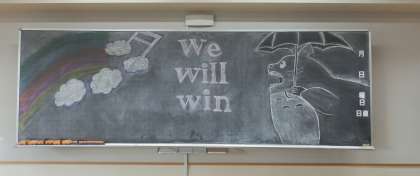 1枚目の写真、合唱コンクールに向けての黒板アート