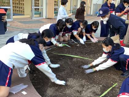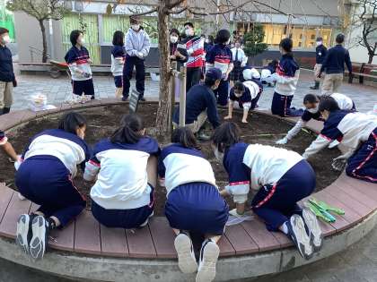 生徒会が中心になり、ボランティアを募り30人を超える生徒が参加してくれました。花が咲く時がとても楽しみです。