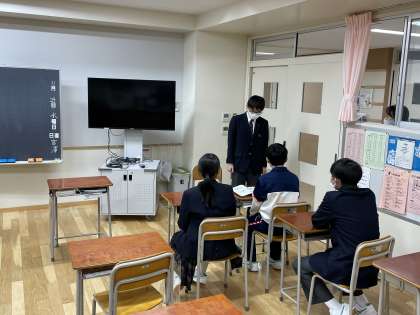 本日、校長先生による面接練習がありました。1校時の学活で、教本をもとに入室の流れ、言葉遣いなどを再確認しました。