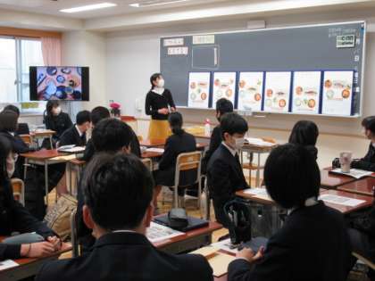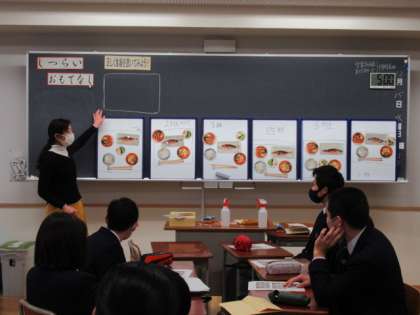 今日の3年生の日本語の授業は一味違いました。来週の水曜日、3年生は和食器で給食をいただきます。そこで本日は本校栄養士の加瀬先生に「食事を豊かにする」をテーマとした授業をしていただきました。箸の置き方・取り方、箸置きが無い時は?…など食事のマナーについて真剣に学習する3年生。聞いている私自身も背筋がピンと伸びる内容でした。高校生、大学生となると次第に目上の方と食事をするときもあることでしょう。今回の授業が生かされるといいですね。給食と言えば、先日パスタを盛り付ける時にレストランの様に「シュルン」とお皿に盛りつける生徒がいました。美しく配膳されると嬉しくなりますね。今日の給食はココア味の揚げパンです。昔から大人気の給食です。なんだかお腹が減ってきてしまう3時間目から投稿させていただきました。