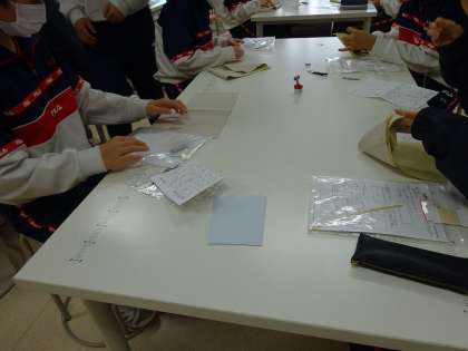 1年生家庭科では文庫本のブックカバー作りに取り組んでいました。