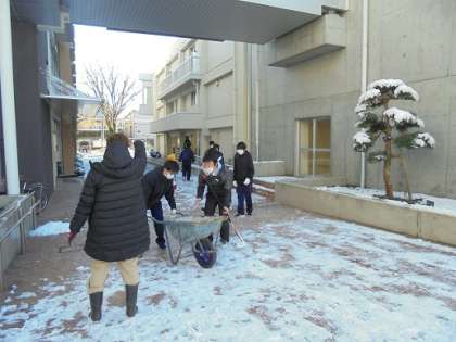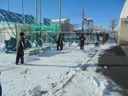 深沢中学校の正門から中庭にかけて、そして校庭などの雪かきの様子です。主事さん方や先生と協力して、雪かきを手伝った男子のテニス部員の皆さんです。日々の活動に加えて、こうした奉仕の精神をもって活動していることに、大きな成長を感じます。