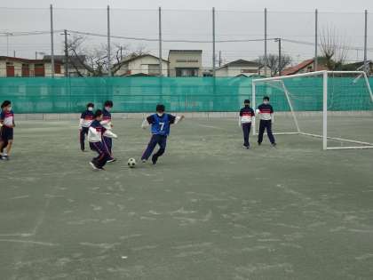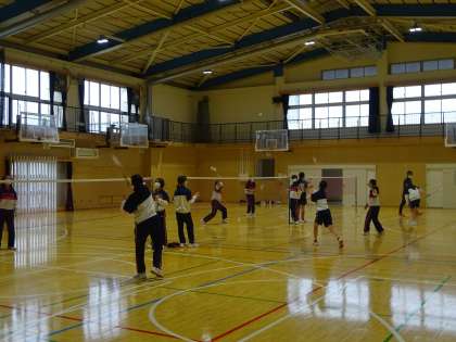 1年生の体育は、男子はサッカー、女子はバドミントン。