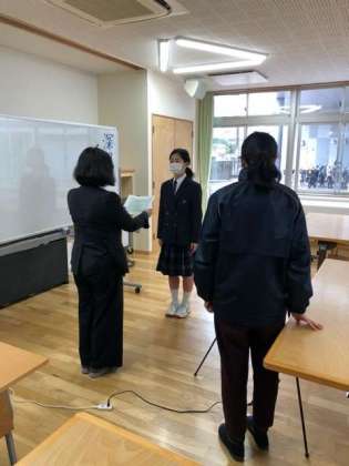 本日の朝礼で世田谷区立中学校生徒作品展覧会に選ばれた生徒の表彰がありました。技術科、家庭科、美術科、国語科で選ばれた作品は1月に世田谷美術館で展示されました。どの作品も力作でした。来年も楽しみです。