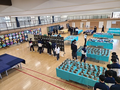 金曜日の午後に学芸発表会展示の部の作品展示作業をおこないました。