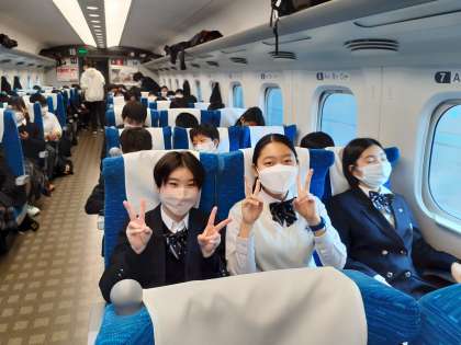今回は、一般のお客様がご乗車される新幹線を使うことになっています。ぐっすり眠っている人もいたり、みんな静かに楽しく過ごしています。