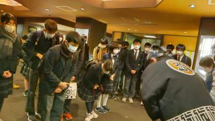 クラスごとにお宿の方々へのお礼をしてから、タクシーに乗り込みます。