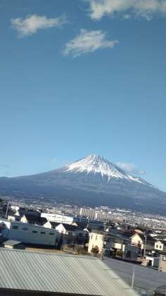 素晴らしい富士山の姿に、新幹線の中では、