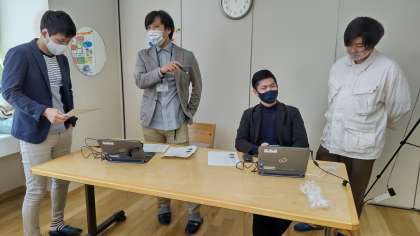 休み時間に寛ぐスピーカーさんたちと学校運営委員の方々。チャットによる質問は、内容も素晴らしいものが続々と入ります。その様子を確認してくれています。