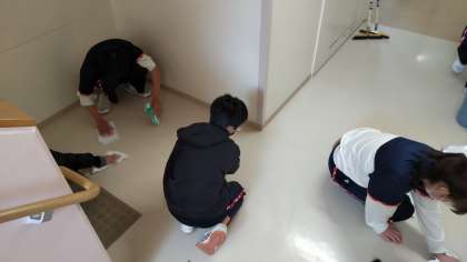 本日は、年度末の大掃除です。1年間の汚れを落とすべく、階段の清掃に熱中しています。