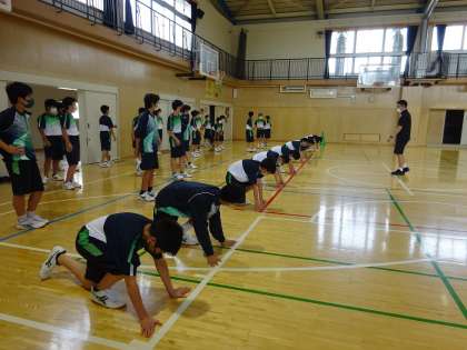 1年生の保健体育の授業では、クラウチングスタートの練習をしていました。体育祭では練習の成果を発揮し、見事なスタートを切る1年生の姿が見られると思います。楽しみにしていて下さい!