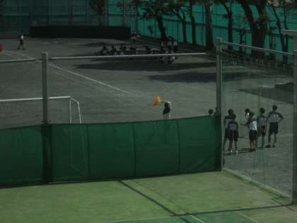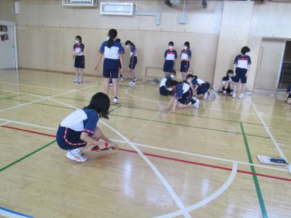 3年生の2クラスは、アリーナと校庭で体育に汗をながしていました。