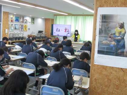 1年生の美術では、明朝体とゴシック体のレタリングを行っていました。どちらが書きやすいか、やってみると雲泥の差があることがわかったようです。