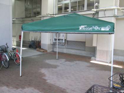 正式なお披露目は、体育祭の予行練習になる予定ですが、同窓会の皆様方から。熱中症予防の立派なタープテントを12梁、寄贈していただきました。