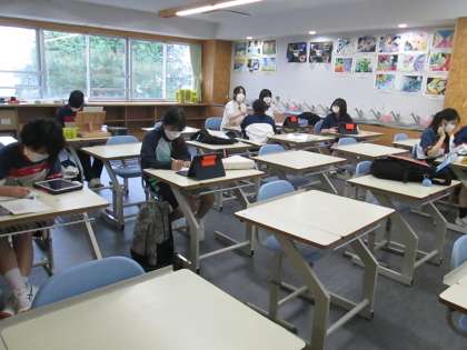 2階美術室では、思い思いの作品製作に取り組む、美術部員が活動していました。