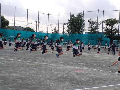 校庭で練習できる1年生は、リレーの練習が終わると、やはり大縄跳びの練習に。