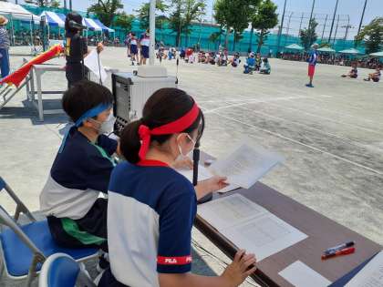 次は、2年生男子リレー選手紹介を聞き取りやすいアナウンスで行っている放送委員会のメンバーです。