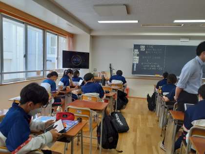隣のクラスでは、黙々とQubenaを進めていました。iPadは大活躍しています。