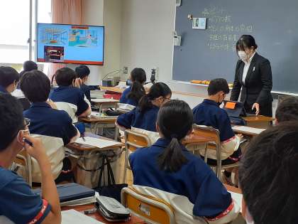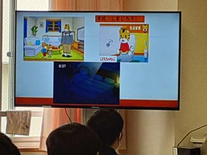 教育実習の先生による住まいの学習では、サザエさんの家(我らが桜新町の象徴ですよね!)や皆さんに馴染みのあるキャラクターの家を調べた資料が各自のiPadにも転送されて進行していました。