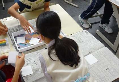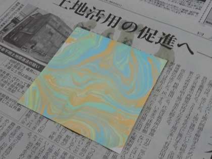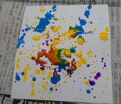 1年生の美術では、モダンテクニックについて学んでいました。本日の授業では、マーブリングとドリッピングについて学び、実際に練習しました。紙にきれいに写った時に生徒達の目が輝いていたのが印象的でした。今後、この技法を作品に生かしていくようです。これからの授業も楽しみですね。