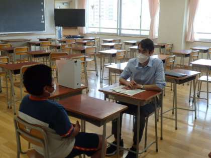 一方でALTの先生からのインタビューに受け答えるテストも同時に行われていました。みんな真剣です。