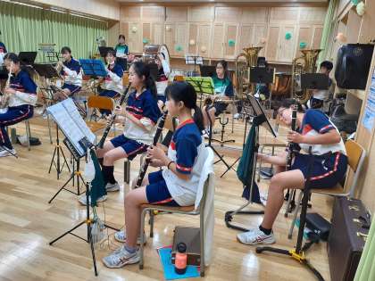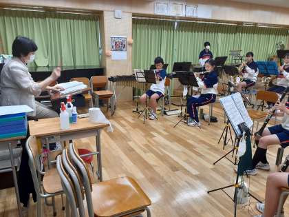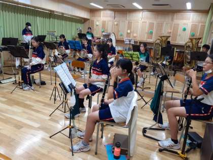吹奏楽部は、夏のコンクールに向けて、熱のこもった全体練習が続いています。みんな暑さもなんのそので、集中している様子です。
