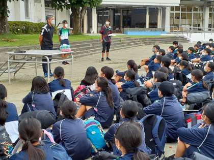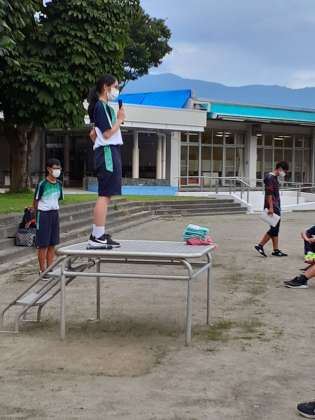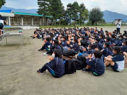 ほぼ予定どおり、世田谷区立河口湖林間学園に、到着しました。