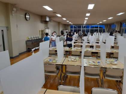 食事の準備も、小林さんが自ら指導してくださいました。一人ひとりがパーテーションで仕切られています。