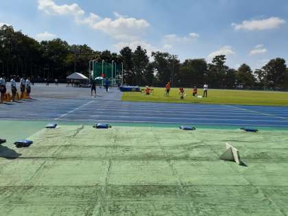 フィールドでは、走り高跳びが行われています。少し離れているので、写真が小さくなっております。