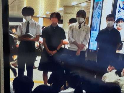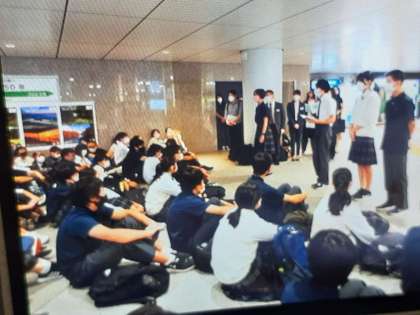 東京駅の集合場所で、実行委員の進行による出発式が行われました。お見送りの保護者の皆さまありがとうございました。