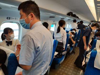 新幹線の中で、楽しむ様子をお伝えします。3組→1組になっていきます。
