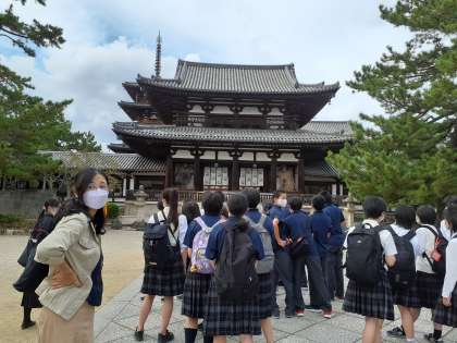 法隆寺に着きました。クラス写真を撮り、見学に入ります。