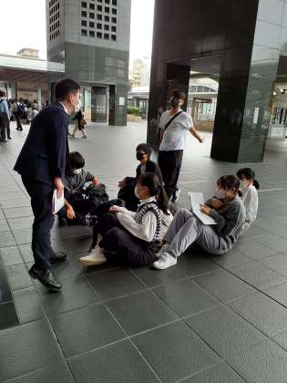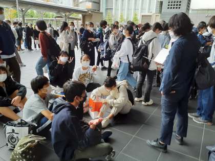 タクシー班行動が終わり、続々とみんなが戻って来て、楽しそうに談笑しています。