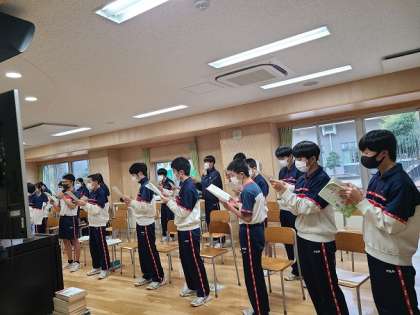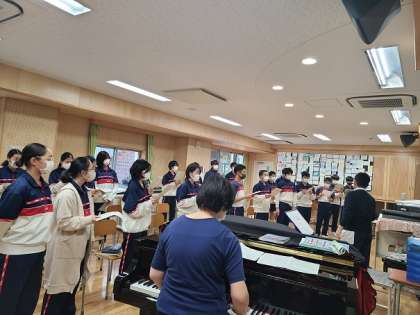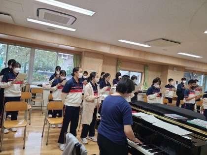 昼休みに有志合唱の練習があり、1階の音楽室から素敵な歌声が廊下まで響いてきました♪