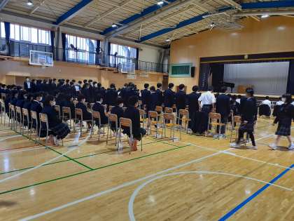2年生のリハーサルが6時間目にアリーナで行われています。保護者の皆さまが大勢お越しくださって、程よい緊張感に包まれています。