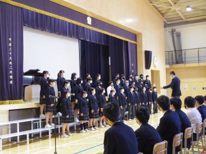 本日5時間目に3年生の合唱リハーサルがありました。学芸発表会を明後日に控え、各クラス課題曲、自由曲を披露しました。どのクラスも1週間前の学年練習の時よりも格段と声が出ていて美しいハーモニーを奏でていました。本番は気持ちのこもった歌で人を感動させる歌を歌ってくれると思います。