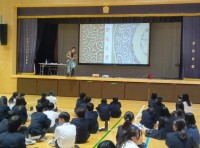 もうひと班がやって来ました。北鎌倉駅前に比べると、人が少ないなで、ゆったり見学できそうです。