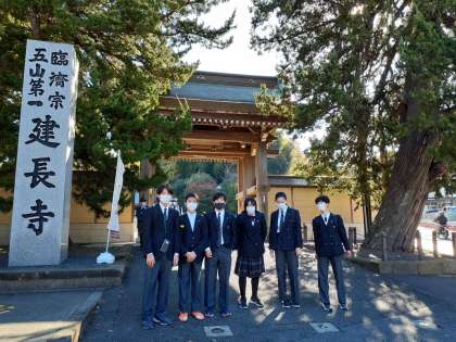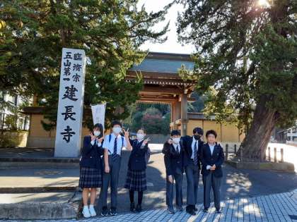 班で仲良く建長寺に入ります。しっかり見学してきてください。
