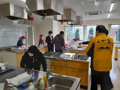 八丈島の鯵をさばく、「浜のかあさんと語ろう会」の準備が着々と進んでいます。