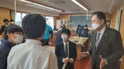 SDGsが叫ばれている昨今、またまた注目を集めている本校の建築方法ですが、実際に学校生活を送っている生徒たちは、どのように感じているのかを区長さん自ら検証するためにお越しいただきました。