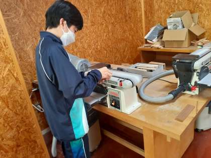 1年生は、木工室で、各自が選んだ「生活に役立つ作品」を製作しています。