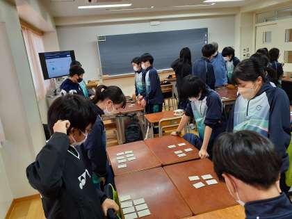 1月に行う「百人一首」大会に向けて、各教室は百人一首の練習でもりあがっていました。