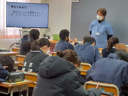 1年生は、「生命の尊さ」で、殺処分される犬や猫などペット飼育に関する資料から、意見交換を行いました。