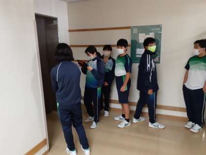 副区長さんの視察中には、1年生家庭科で校舎のバリアフリーを探す授業が展開されていました。
